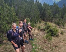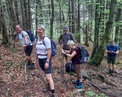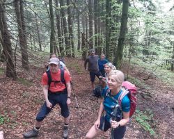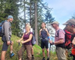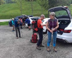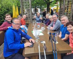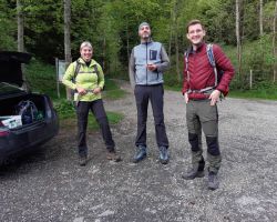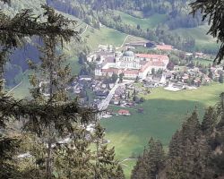 Der Abstieg war steil, erforderte Schwindelfreiheit und große Trittsicherheit auf feuchtem Untergrund. Ein paar Male haben wir uns auf den Hosenboden gesetzt, doch letztendlich sind alle wieder wohlbehalten im Tal angekommen. Dort konnten wir direkt in der Ettaler Mühle einkehren und ein kühles Getränk genießen, welches wir uns redlich verdient hatten. Anschließend marschierten wir noch an Ettal vorbei bis zum Parkplatz.