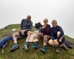 Dort haben wir dann ausgiebig unsere mitgebrachte Brotzeit genossen. Leider waren die umliegenden Berge in Nebel gehüllt, so dass wir die tolle Rundumsicht nur eingeschränkt genießen konnten.