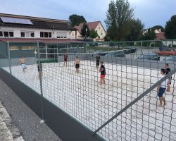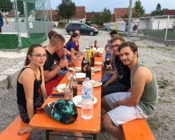 Am Freitag den 21.07. trafen wir uns abends, bei wunderschönem Wetter, zum gemeinsamen Grillen und Beachvolleyball spielen. Zu dreizehnt spielten wir einige sehr unterhaltsame Beachvolleyball Spiele und zündeten anschließend den Grill an um gemeinsam zu grillen. Bei guter Unterhaltung aßen wir zusammen um uns anschließend wieder, gut gelaunt, im Sand zu duellieren.