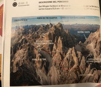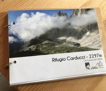 Die Dreizinnenhütte liegt spektakulär vor den Drei Zinnen und ist, spätestens seit die Dolomiten Weltkulturerbe sind, weltweit bekannt und vielbesucht. Entsprechen ist der Betrieb hektisch, voll, laut und vielsprachig. Man muss dort nicht unbedingt übernachtet haben.