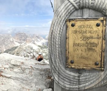 Vor dem Frühstück legten wir uns nochmal ein wenig auf’s Ohr und anschließen wurde gepackt. Das Klettersteigset konnte gleich angelegt werden, denn unmittelbar neben der Dreizinnenhütte liegt der einzige Gipfel unserer Tour, der Paternkofel (2744 m). Der im Ersten Weltkrieg umkämpfte Gipfel ist, wenn man schon da ist, ein Muss für Klettersteigfreunde.
