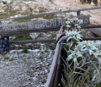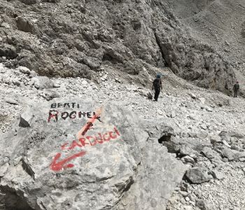 Am letzten Tourentag war keine Zeit zum Trödeln: wir wussten es lag eine mindestens 9-stündige Strecke vor uns. Um 07:30 waren wir daher schon unterwegs, zunächst nochmal vorbei am Rifugio Carducci. Der Wirt hat sich erinnert und sich gefreut uns nochmal zu sehen.