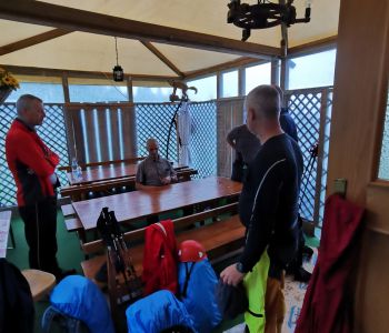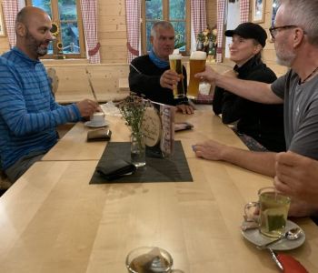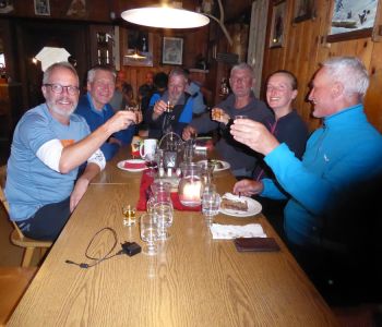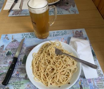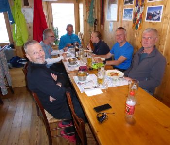 Der sympathische Hüttenwirt Bepi Monti hat uns dort freundlich empfangen und auch noch den Ofen angeschürt zum Trocknen von Schuhen und Kleidung, denn wir waren weitgehend durchnässt. Vor dem Abendessen war noch Zeit für ein Hüttenbier und ein Nickerchen. Das Essen war dann sehr gut und wir gingen früh schlafen.