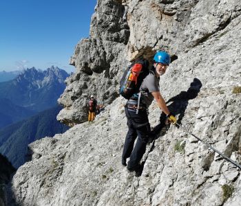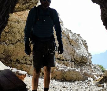 Zunächst ging es durchaus länger und teilweise recht steil in alten Kriegstunneln nach oben und dann weiter über einen gut gesicherten, schon anspruchsvollen aber für alle problemlos machbaren Klettersteig zum Gipfel.