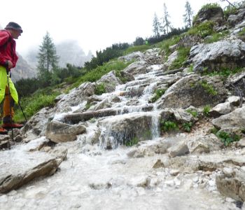 So sind wir also im strömenden Regen über normale, aber teilweise überflutete Wanderpfade zur Zsigmondyhütte aufgestiegen und von dort aus weiter zum eigentlichen Ziel des Tages: Rifugio Carducci.