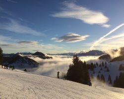 Drei Tage später, am Freitag 5. Januar, ging es erneut ins Sudelfeld. Blauer Himmel und Sonne begleiteten die Skifahrer, Snowborder und Tourengeher bis zum frühen Nachmittag, die Pisten waren trotz der inzwischen höheren Temperaturen und des Regens der vorherigen Tage immer noch recht gut.