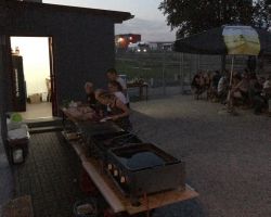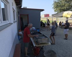 Für den Hunger gab es von drei Grills Fleisch, Bratwürste, Grillgemüse und Grillkäse, dazu Kartoffelsalat und viele von Gästen mitgebrachte Beilagen und Salate. Später lockte auch noch ein tolles reichhaltiges Nachspeisenbuffet.