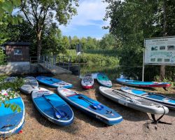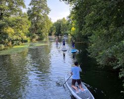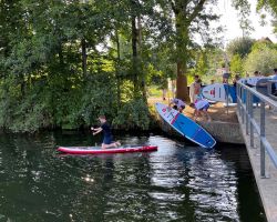 Am 28.7.22 trafen sich 14 Jugendliche und 4 Betreuer zum Stand up paddling auf der Schmutter.